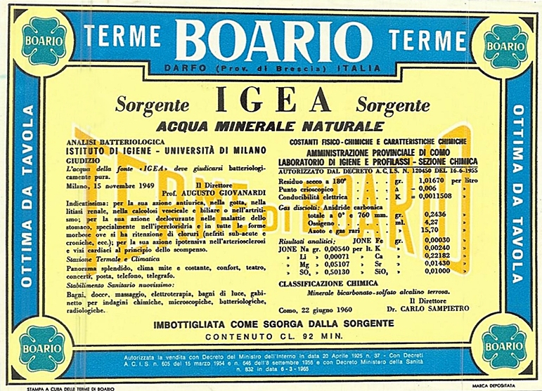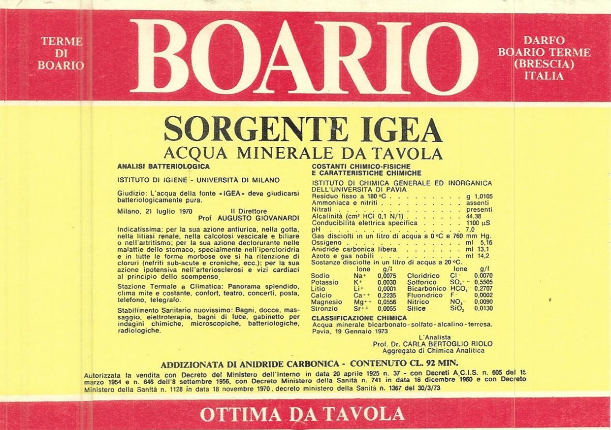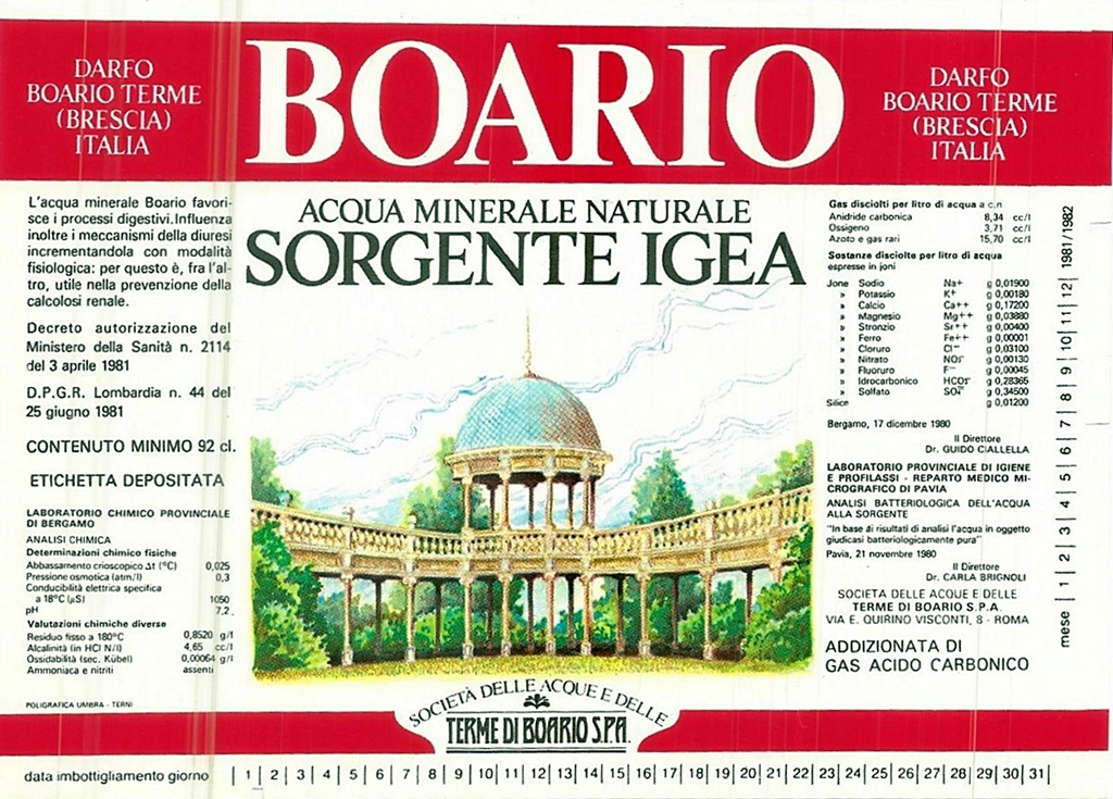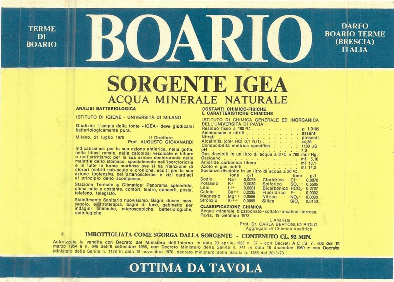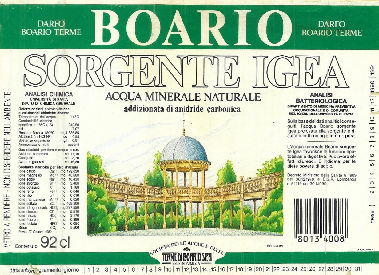 BOARIO ACTIV', naturale e frizzante,analisi 15 marzo 2000
