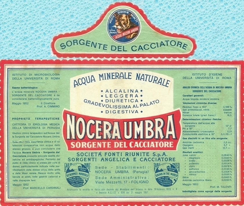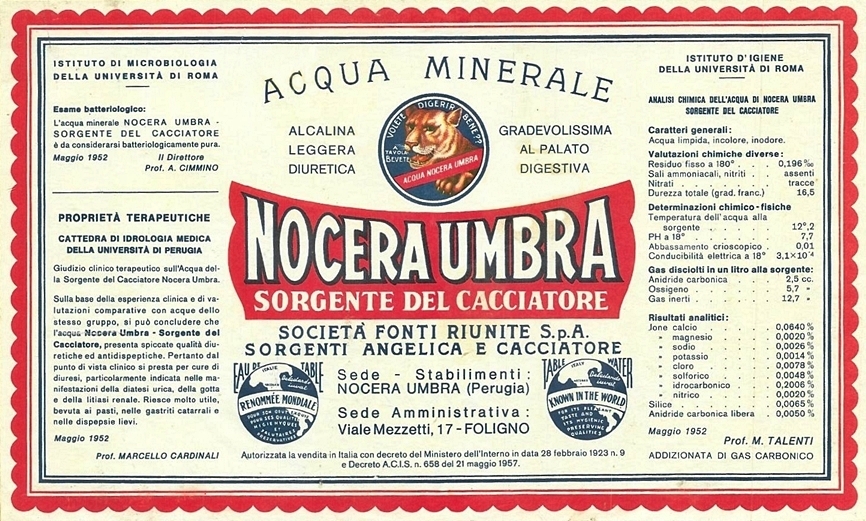 acqua naturale e frizzante, analisi, maggio 1952